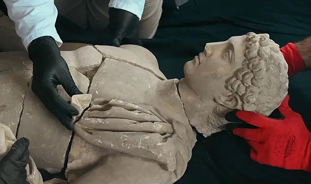 “Zamanın sessiz tanığı Aspendos’ta, yüzyıllardır gömülü kalan figürler gün ışığına kavuştu.Aspendos Antik Kenti'nde #GeleceğeMiras Projemiz kapsamında süren kazılarda, Roma İmparatorluk Dönemi’ne ait Hermes heykeli gün yüzüne çıktı. Aynı alanda Aphrodite ve Eros’un başları ile Artemis ve Nemesis’e ait heykel parçaları da keşfedildi. Projede emeği geçen @kvmgm çalışanlarımıza gönülden teşekkür ediyor, ayağa kaldıracağımız bu eserlerin ülkemiz kültür ve turizm hayatına hayırlı olmasını diliyorum.”ZEUS’UN HABERCİSİ HERMESOrtaya çıkarılan heykel, Olympos’un baş tanrısı Zeus’un habercisi ve tanrıların en hızlısı olarak bilinen Hermes’i tasvir ediyor. Hellen mitolojisinde yolların, ticaretin, konukseverliğin, diplomasinin, yarışmaların ve astronominin tanrısı olarak bilinen Hermes, aynı zamanda hırsızlar ile tüccarların, sürülerin ve çobanların koruyucusu olarak da tanımlanıyor.Heykel, sağ elinde bir para kesesi, sol elinde ise omuzundan aşağı doğru sarkan peleriniyle birlikte tuttuğu kerykeionu (asası) ile betimlenmiş. Sol ayağının yanında ise başı Hermes’e dönük bir koç figürü yer alıyor. Yazıtlı bir kaide üzerinde ayakta duran heykelin ağırlığı sol ayağına verilmiş, sağ ayağı ise dizden hafifçe kırılarak öne atılmış.Kazı çalışmalarında parçalı olarak ortaya çıkarılan ve tamamına yakın bölümü gün yüzüne çıkarılan heykel, kazı evi deposunda birleştirilerek bütüncül haliyle değerlendirildi. Kaidesiyle birlikte toplam 1,65 metre yüksekliğe ulaşan eser, stilistik özellikleri açısından Roma İmparatorluk Dönemi’ne (MS 2. yy sonu - 3. yy başları) tarihlendirilmektedir.AYNI ALANDA APHRODİTE VE EROS’A AİT BAŞLAR BULUNDUHermes heykelinin bulunduğu alanda, aşk ve güzellik tanrıçası Aphrodite ile aşk tanrısı Eros’a ait olduğu değerlendirilen başlar da ortaya çıkarıldı. Heykellerin bölgeye özgü sanatsal üslupla işlendiği ve dönemin estetik anlayışını yansıttığı gözlemlendi.Geleceğe Miras Projesi kapsamında yürütülen 2024 yılı kazı çalışmalarında, aynı bölgede av, vahşi doğa, hayvanlar ve doğa tanrıçası Artemis ile adalet, denge, kader ve intikamın sembolü Nemesis’e ait olduğu düşünülen gövde parçaları da gün yüzüne çıkarıldı.Aspendos Antik Kenti’nde sürdürülen kazı çalışmaları, bölgenin kültürel mirasına ışık tutmaya devam ediyor.